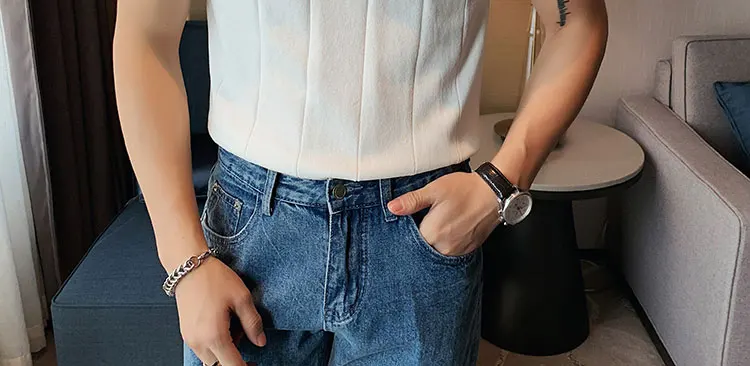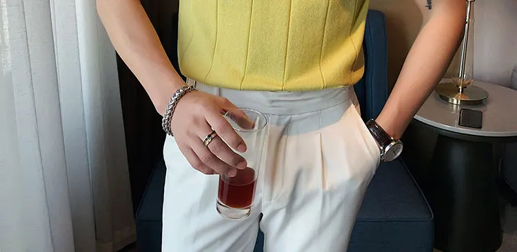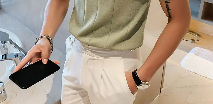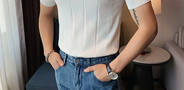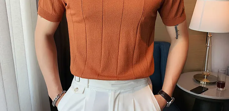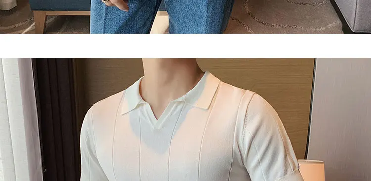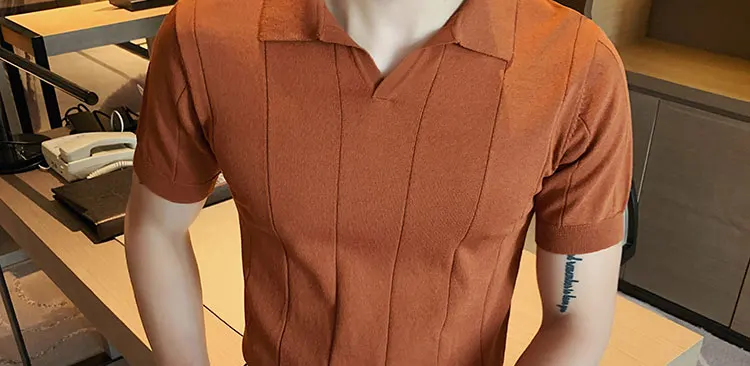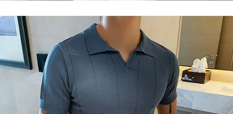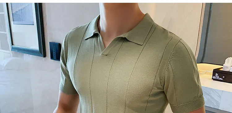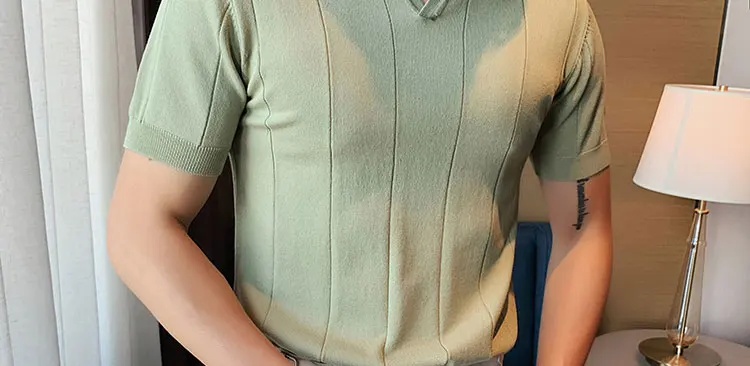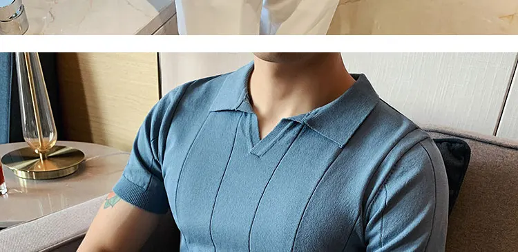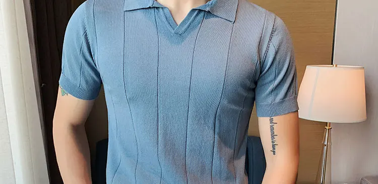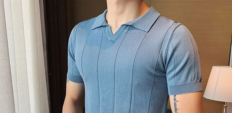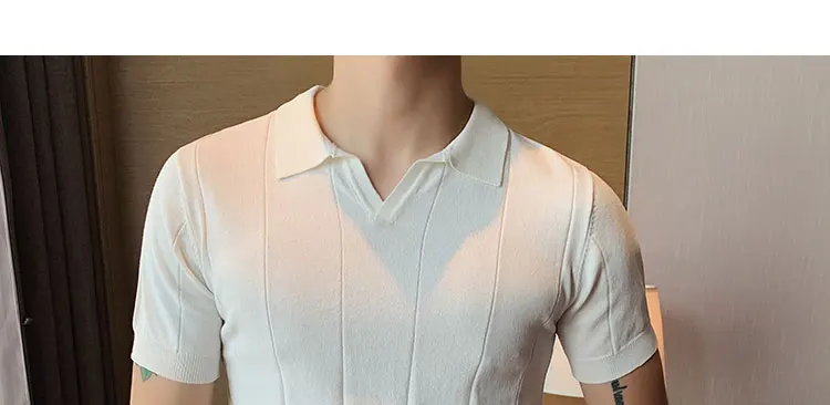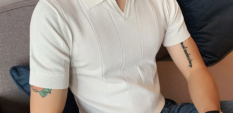 Premium Ice Silk V-Neck Knitted Men's T-Shirt - Summer 2023 Business Fashion